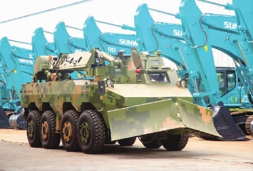 山河智能设计制造的轮式装甲工程车。王珏摄