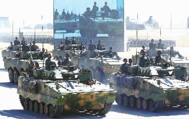 江麓集团研制生产的步兵战车亮相阅兵式。新华社图