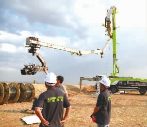 中联重科制造的起重机辅助架设鹰眼。