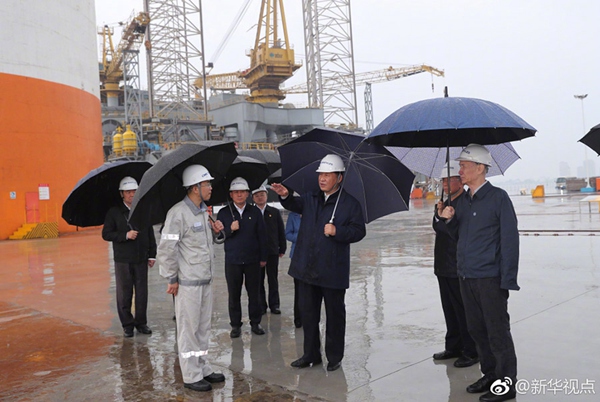 习近平冒雨考察海洋工程设备制造基地