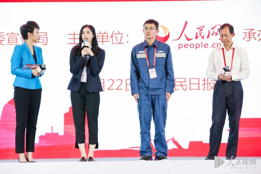活动主持人、人民日报政文部主编赵婀娜对话全国道德模范、中建钢构华南大区总工程师陆建新