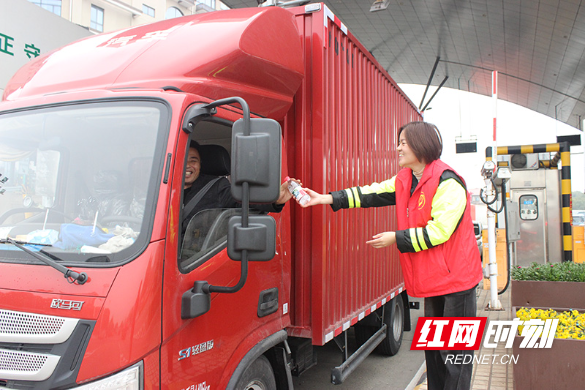 现代投资长沙分公司工作人员在收费站出口提供暖心服务。
