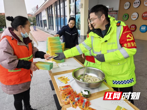 一支由青年党员、业务骨干、团员为核心的志愿服务队迅速集结。在收费站车道旁,他们是“疏导员”与“技术顾问”,高效引导车辆、耐心解答ETC使用疑问;在人头攒动的服务区大厅,他们化身“活地图”与“贴心帮手”,不仅指引方向、解答路况,更将姜茶和装有简易食品与防护用品的“暖心礼包”递到司乘手中。服务半径更延伸至沿线乡镇社区,志愿者通过发放宣传资料、现场讲解等方式,普及安全出行知识,从源头助力平安春运。