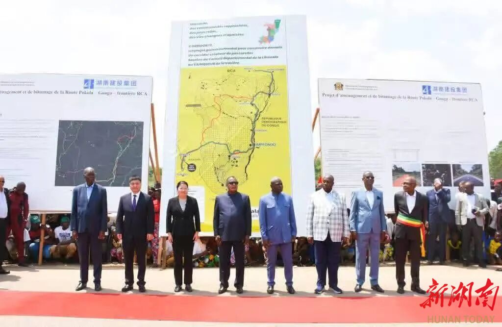 当地时间2月25日上午,由湖南建设投资集团承建的刚果(布)13号走廊项目LOT2-LOT7标段在因普丰多举行开工启动仪式。刚果(布)总统德尼·萨苏-恩格索亲临现场并为项目奠基,总理阿纳托尔·克利内·马科索及刚方政府官员、中国驻刚果(布)大使安青、当地民众代表等共同见证。