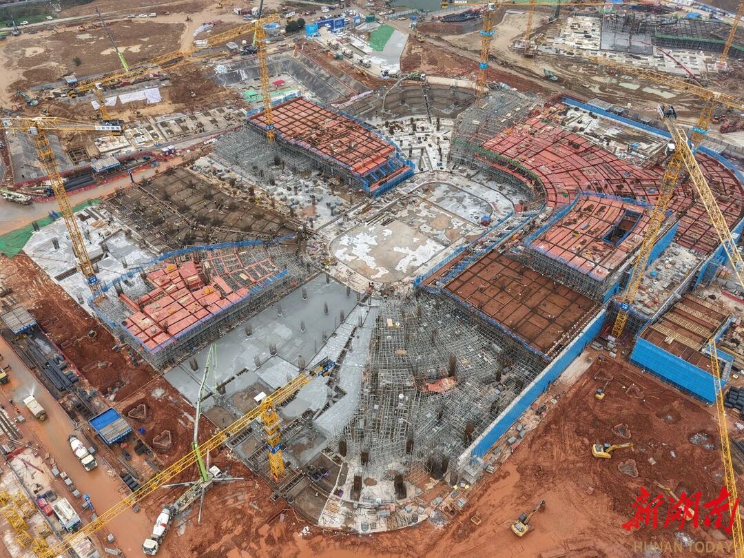 长沙奥体中心项目位于长沙南部融城片区核心区,是第十六届全运会主要场馆,规划建设“一场两馆”及配套设施,总建筑面积约55万平方米,是湖南省规模最大、现代化程度最高的综合体育设施,也是推动长株潭都市圈融合发展和建设体育强省的标志性工程。