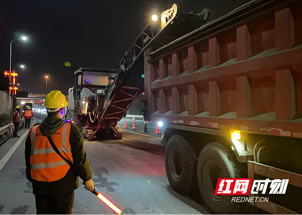 自今年11月2日实行免费通行政策后,长永高速车流量呈现爆发式增长。面对压力,现代投资长沙分公司与高速交警部门紧密协同,科学研判,多次召开专题评审会,反复优化交通组织与施工方案。最终确定了“夜间错峰、分段突击、多点推进”的攻坚策略,将施工主要安排在车流量相对较小的夜间进行,并精确划分作业段与时段,力求将对公众出行的影响降至最低。